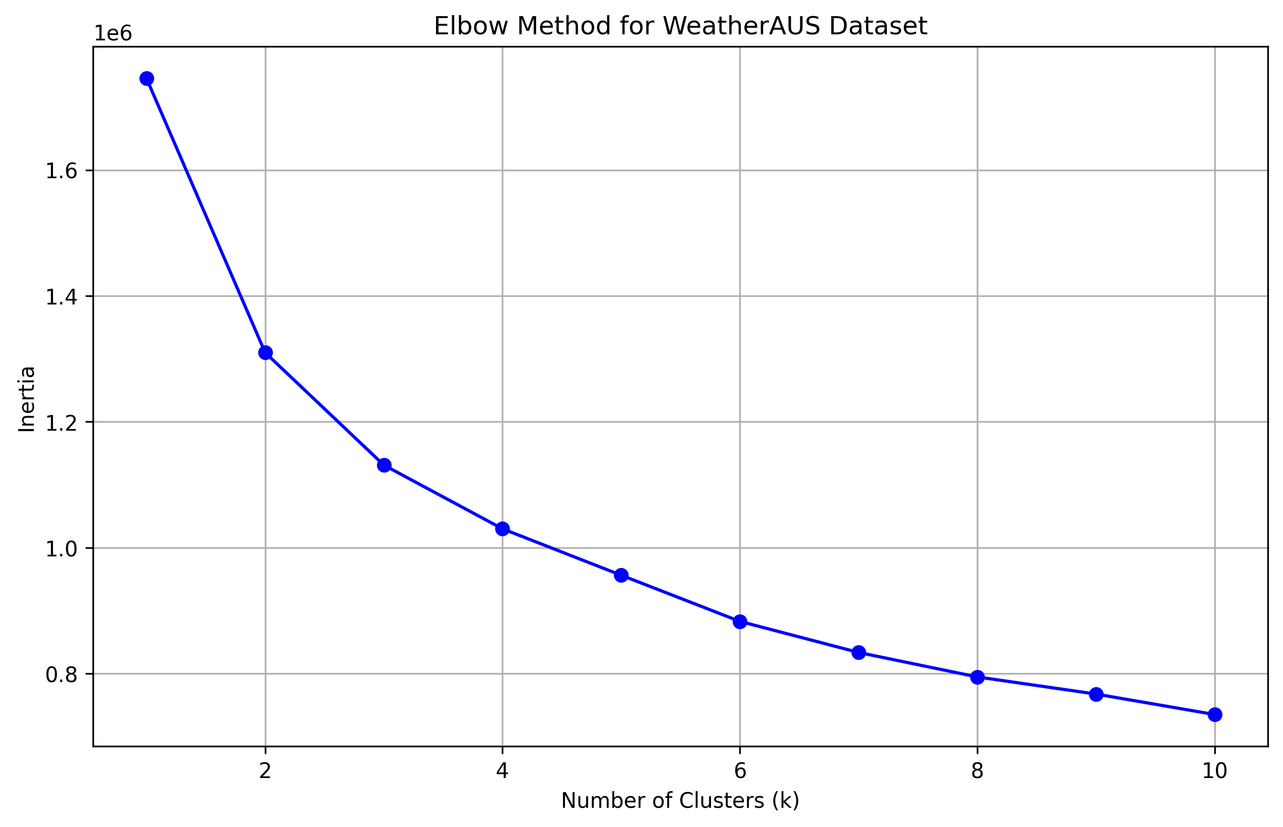 - The WeatherAUS dataset required careful preprocessing and the elbow method helped determine the optimal number of clusters