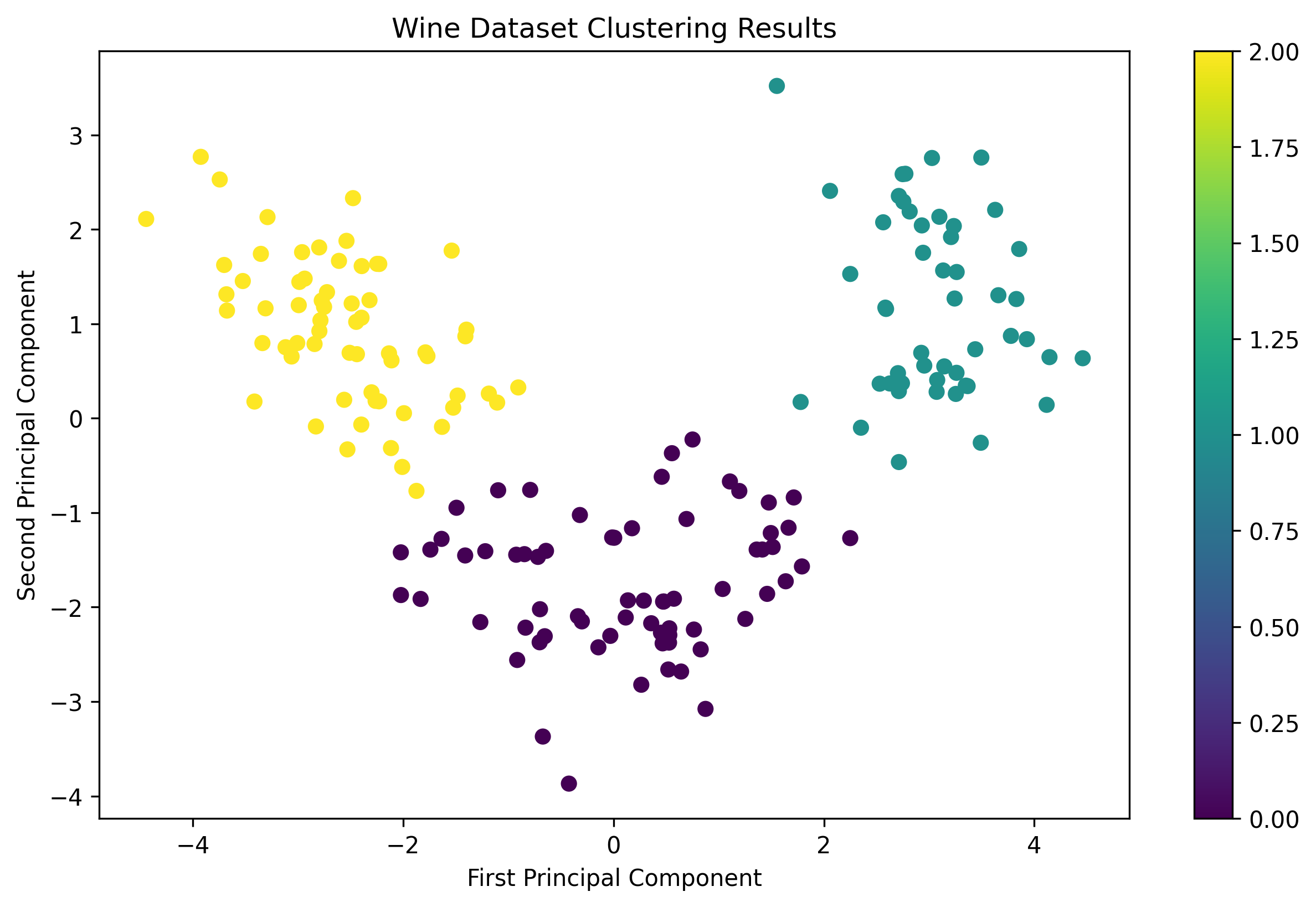 - The Wine dataset demonstrated moderate clustering performance, with some overlap between classes
